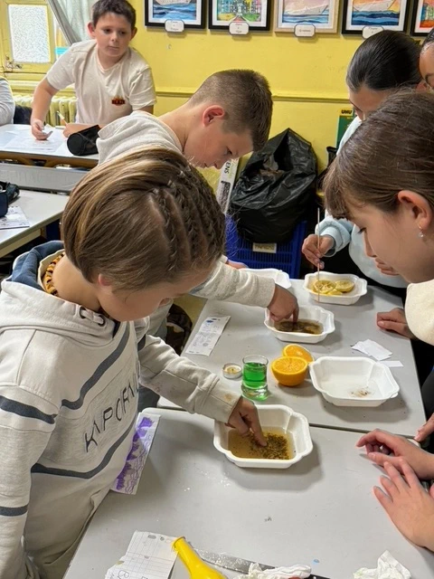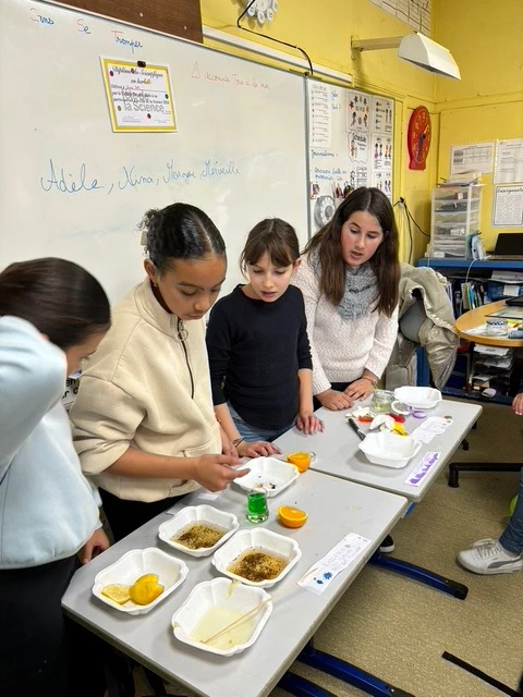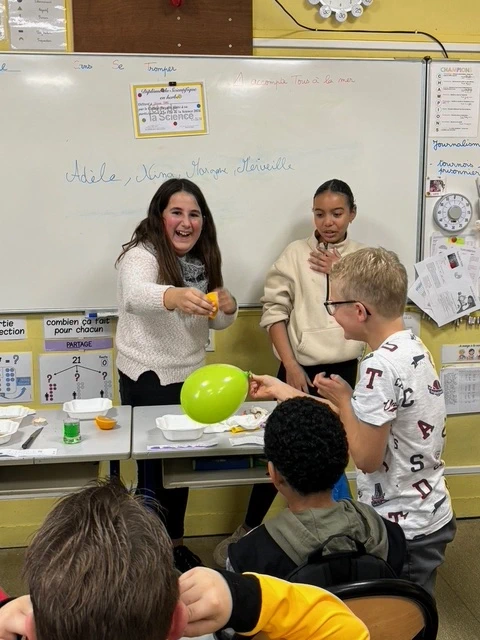 Le jeudi 10 octobre, tous les élèves de CM2 ont passé l’après-midi au collège Trégaro pour la fête de la science. Sur place, les collégiens avaient préparé des expériences. C’était vraiment super. Nous avons tellement aimé que nous avons voulu présenter ces expériences aux élèves de CM1 de la classe. Nous quatre : Adèle, Morgane, Merveille, Nina avons eu cette idée. Nous avons fait 4 expériences que nous avons découvert lors de là bas. Les voici :