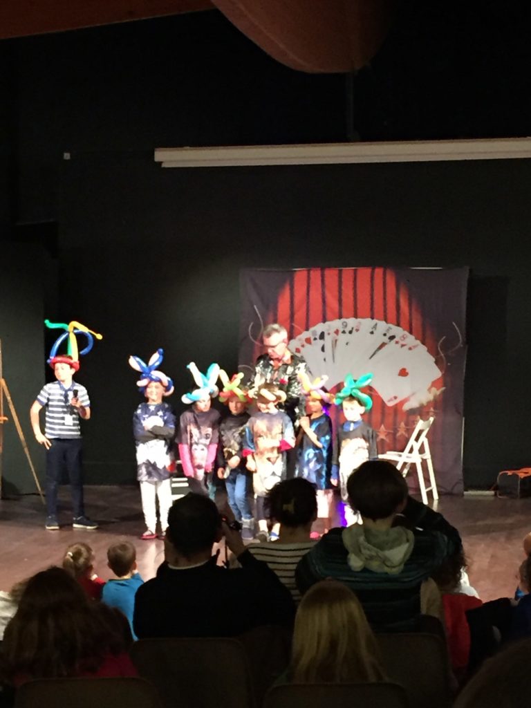 Deux magiciens nous émerveillent avec des tours extraordinaires : apparition de colombes et d’un lapin ; cartes magiques ; animaux et ballons… les enfants sont heureux et en forme !!
