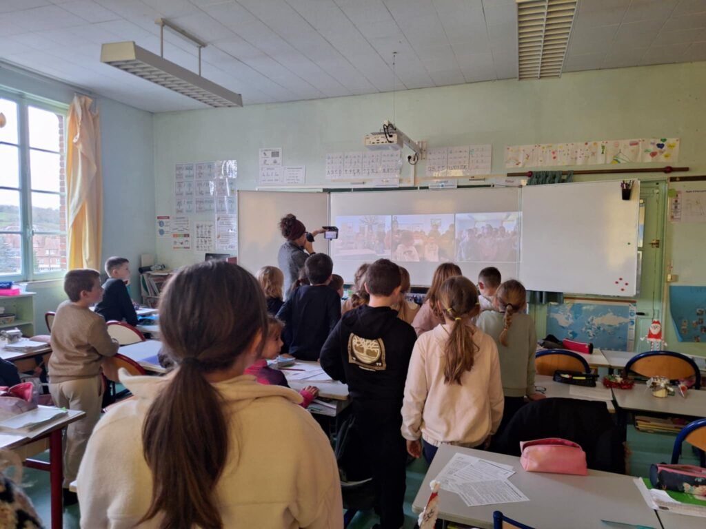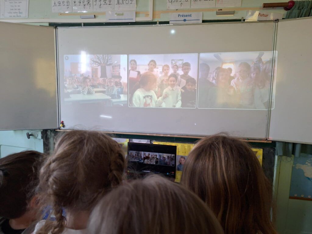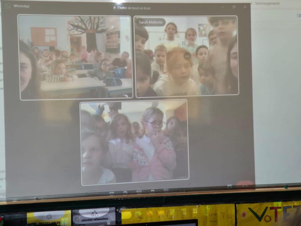 Aujourd’hui, jeudi 18 décembre 2025, nous avons échangé par webcam avec les classes de deux enseignantes présentes à l’école l’an dernier: Mme Malteste, ainsi que Mme Guilbaud qui enseigne à l’école Saint Joseph du Merlerault.