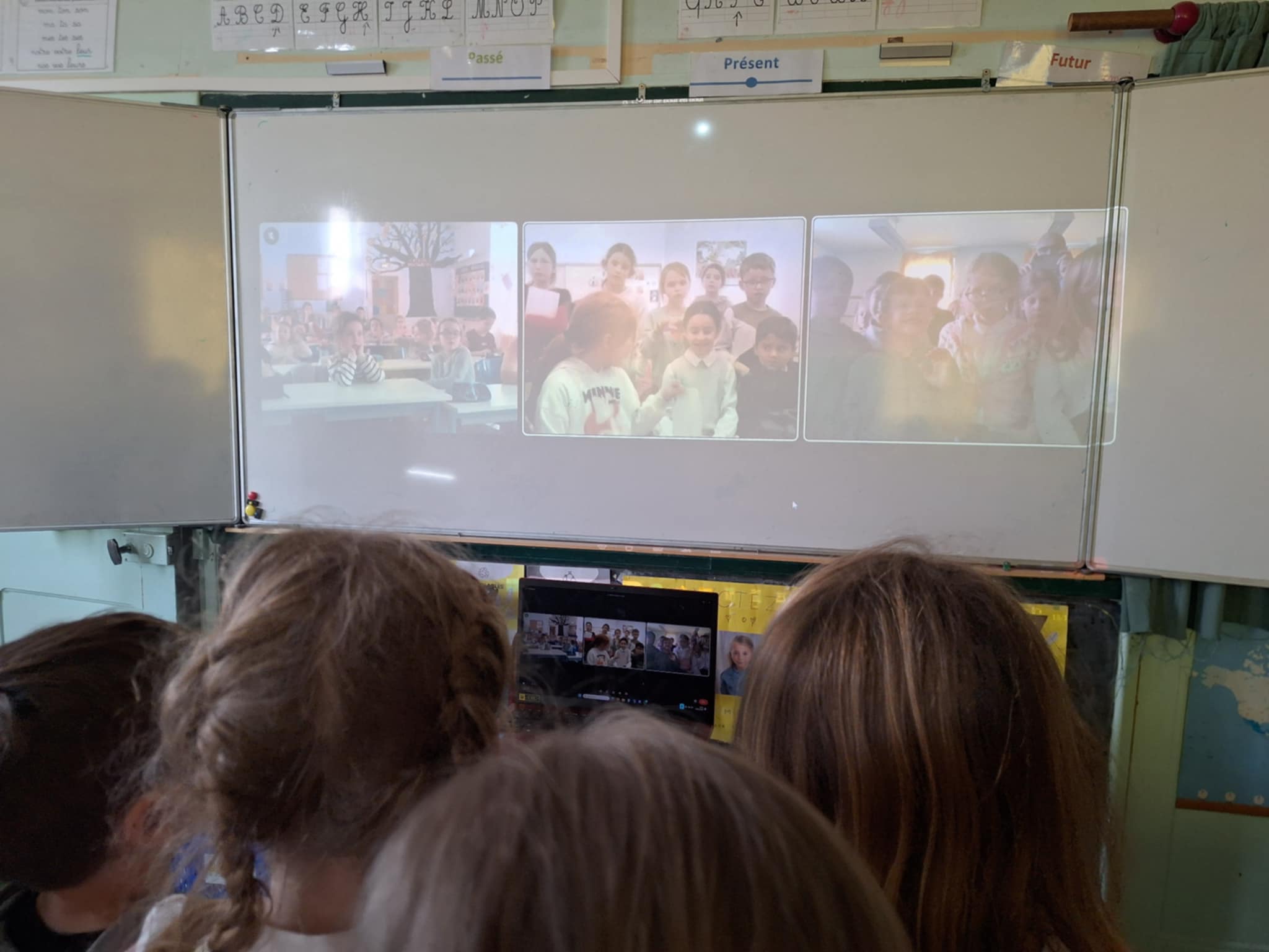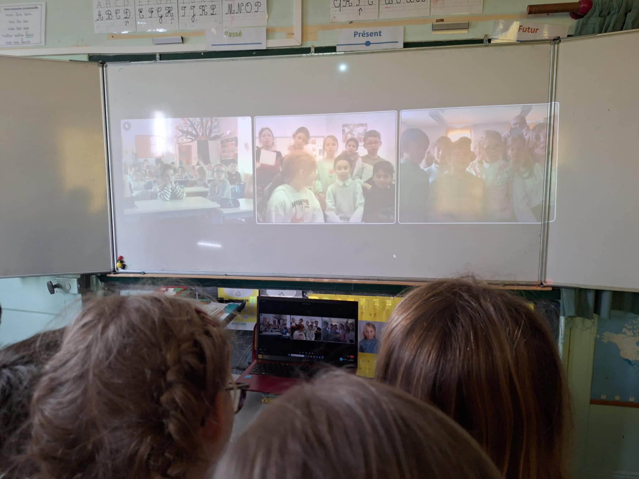 Lors de cette visio, les enfants ont  fait découvrir aux autres classes les chants appris pour Noël.