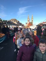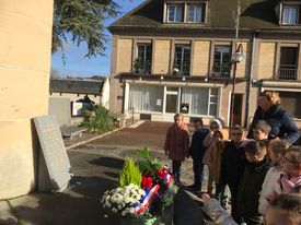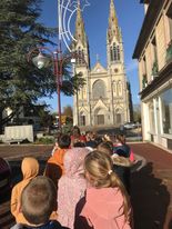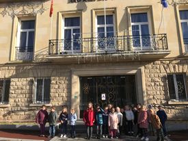 Ensuite nous avons suivi la rivière « La Vie ». Nous nous sommes arrêtés devant la mairie pour en parler. Puis nous avons admiré l’église de l’extérieur et le monument aux morts pour ré-exploiter les connaissances vues sur le 11 novembre. Nous sommes enfin rentrés à l’école en passant par le marché ! C’était une bonne promenade instructive !