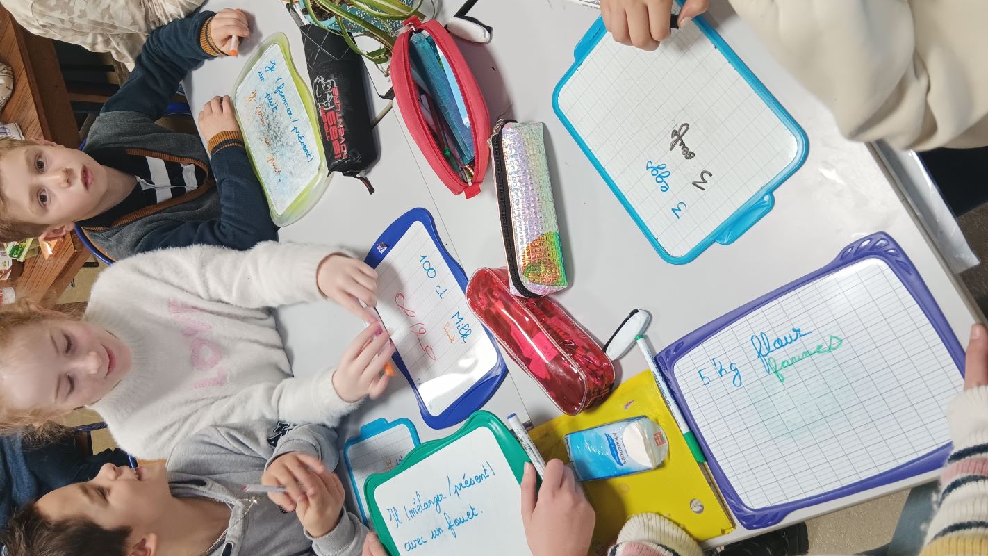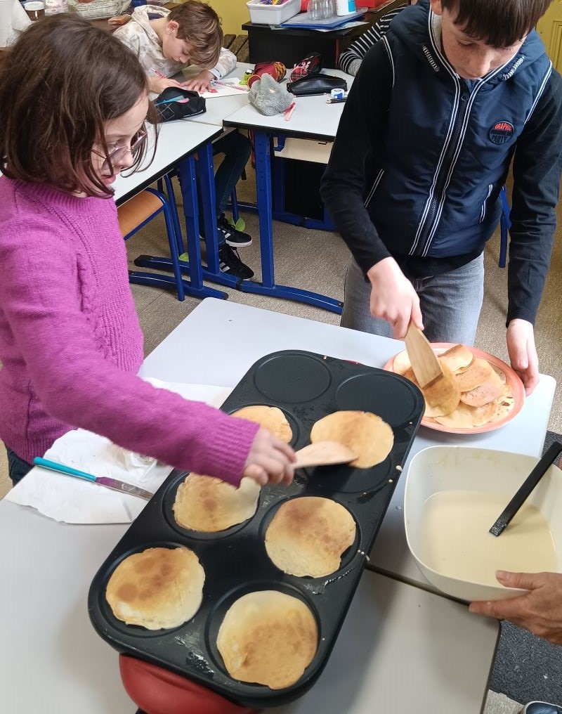 A l’occasion de la chandeleur, les CM de chez madame Lecornu ont préparé des crêpes. Chacun a apporté de quoi faire des crêpes.