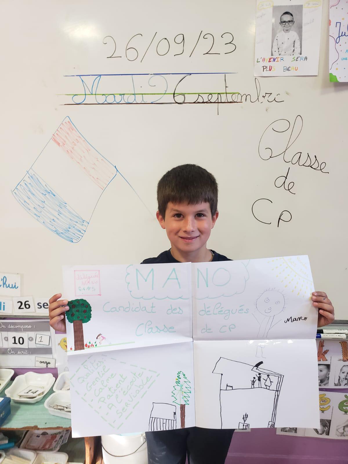 Nous venons d’élire nos délégués. C’est tout nouveau pour nous. Les enfants qui souhaitaient se présenter ont réalisé une affiche pour faire campagne. Ainsi, Syanah, Elsa, Jules, Margot, Estrella, Tyméo, Mano, Calie ont montré leur affiche et ils se sont présentés. Ensuite, chacun a pris les différents bulletins de vote et a voté en mettant les bulletins dans l’urne.