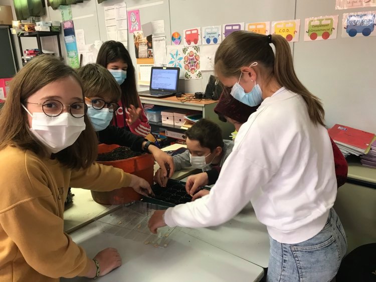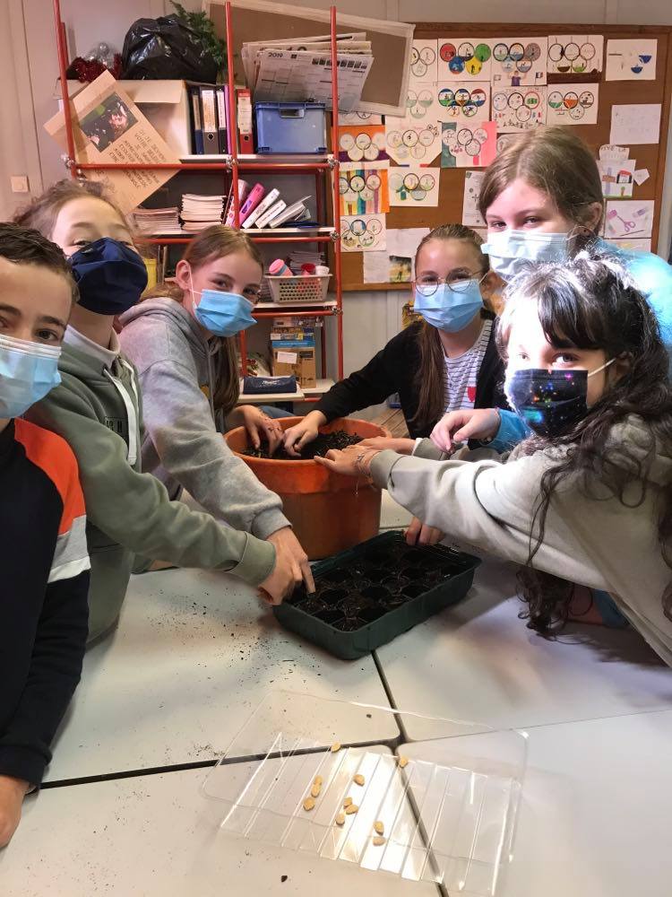 Après avoir finalisé la séquence de sciences sur le développement des végétaux les Cm2 ont semé des graines de potiron dans des mini-serres et ils s’en occupent au quotidien dans la classe.