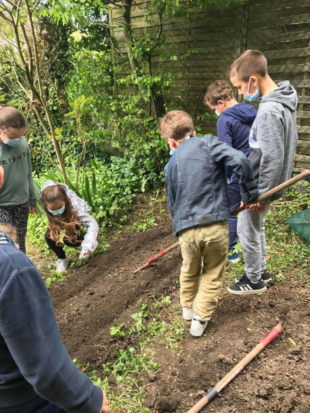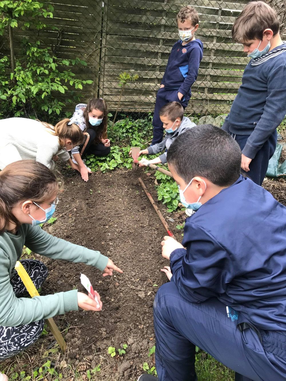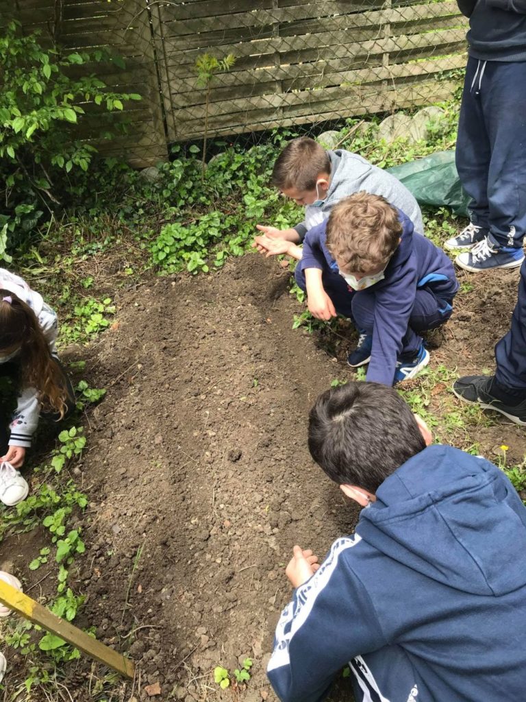 Les Cm1 ont travaillé dans le potager de l’école. On a d’abord travaillé la terre puis on a semé des radis. Ils doivent aussi penser à arroser régulièrement !