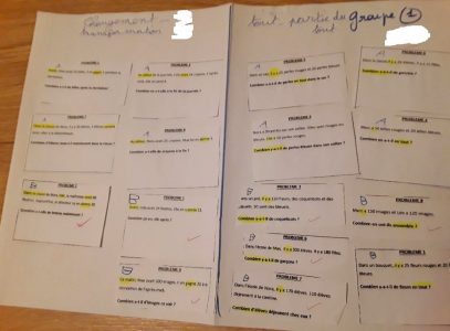 Tous les mardis matin les CM2 sont répartis en deux groupes, l’un avec l’enseignante de la classe et l’autre avec l’enseignante ASH, pour travailler sur les stratégies qui permettent de résoudre des problèmes.