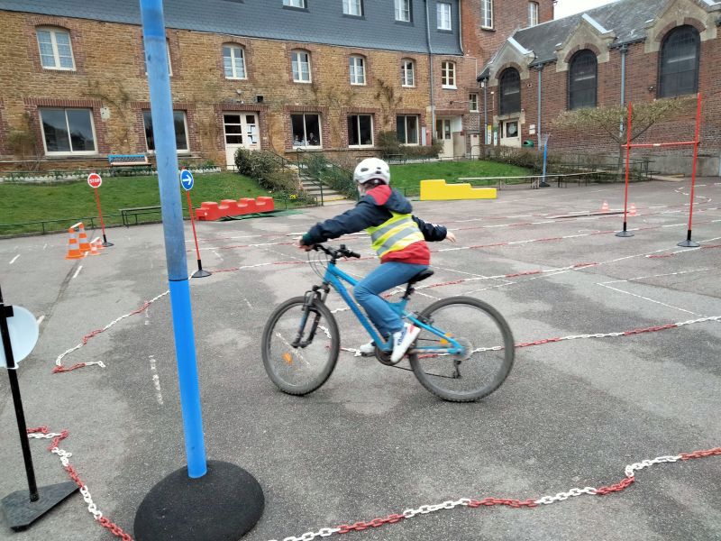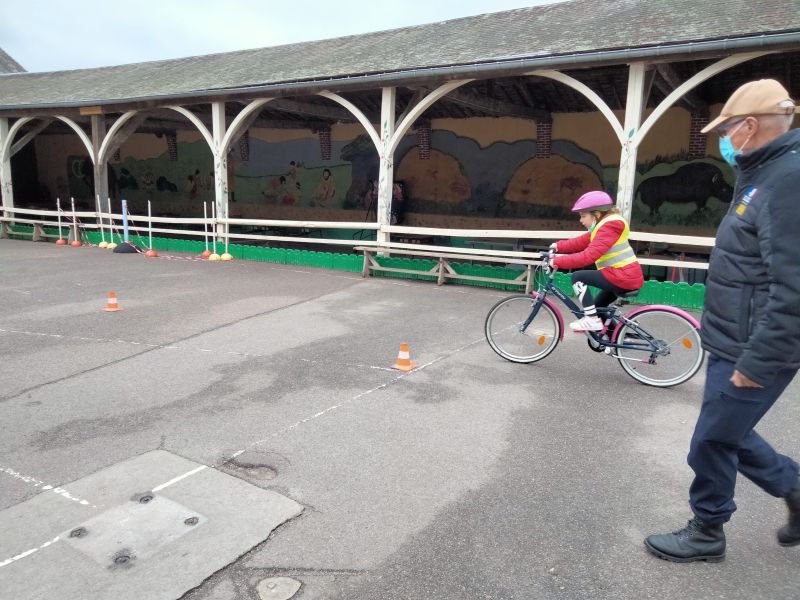 Puis tout à tour il se sont succédés sur la piste : on évite les obstacles (slalom, planche, giratoire…) et on pense surtout aux gestes essentiels !