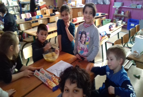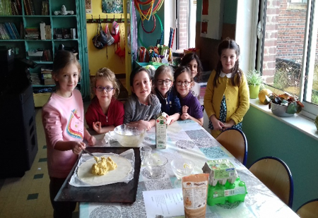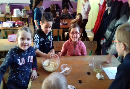 Cette semaine nous avons fabriqué des galettes. Le matin, nous avons lu la recette pour connaitre les ingrédients et le déroulement de la fabrication. Ensuite l’après-midi nous étions de vrais cuisiniers !
