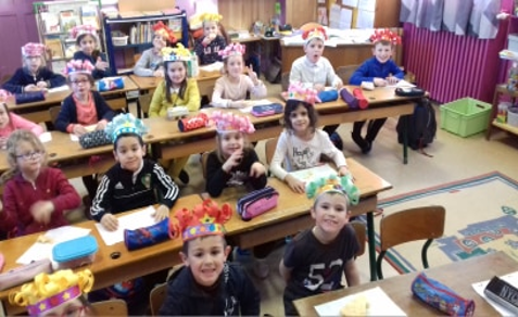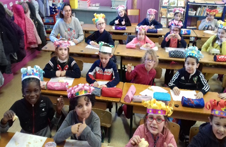 Après la cuisson, nous avons dégusté nos superbes galettes. Hummm…. Quel délice ! Et bien sûr, nous avons fabriqué des superbes couronnes. Car nous étions tous rois et reines du jour !