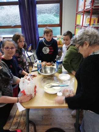 A l’occasion de la fête de la chandeleur, nous avons réalisé en classe des crêpes avec l’aide d’Edith. Ensuite, nous les avons dégustées ensemble ! C’était l’occasion de voir les talents de cuisinier et les gourmands !
