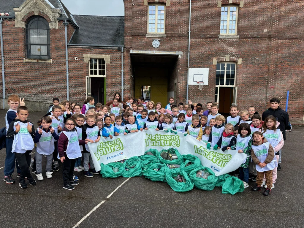 Aujourd’hui, vendredi 27 septembre, nous avons ramassé des déchets dans Vimoutiers. Nous étions quatre classes : les GS, les CP, les CE2-CM1 et une classe de CM1-CM2. Tous les élèves étaient répartis en quatre groupes. Chaque groupe est parti dans un coin de Vimoutiers. Nous avons trouvé des canettes, des emballages plastiques, des bouteilles en verre et beaucoup de mégots. Cet après-midi, nous avons montré l’exemple et nous espérons que les gens feront plus attention.
