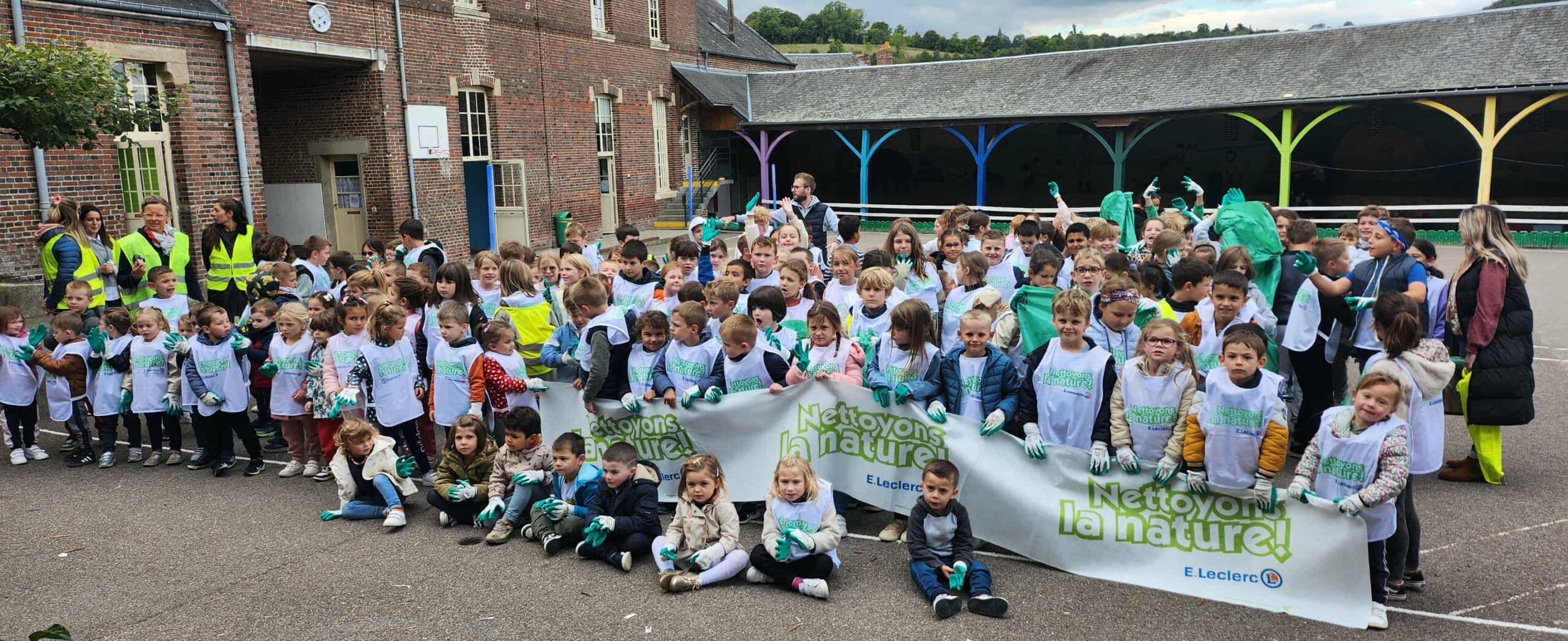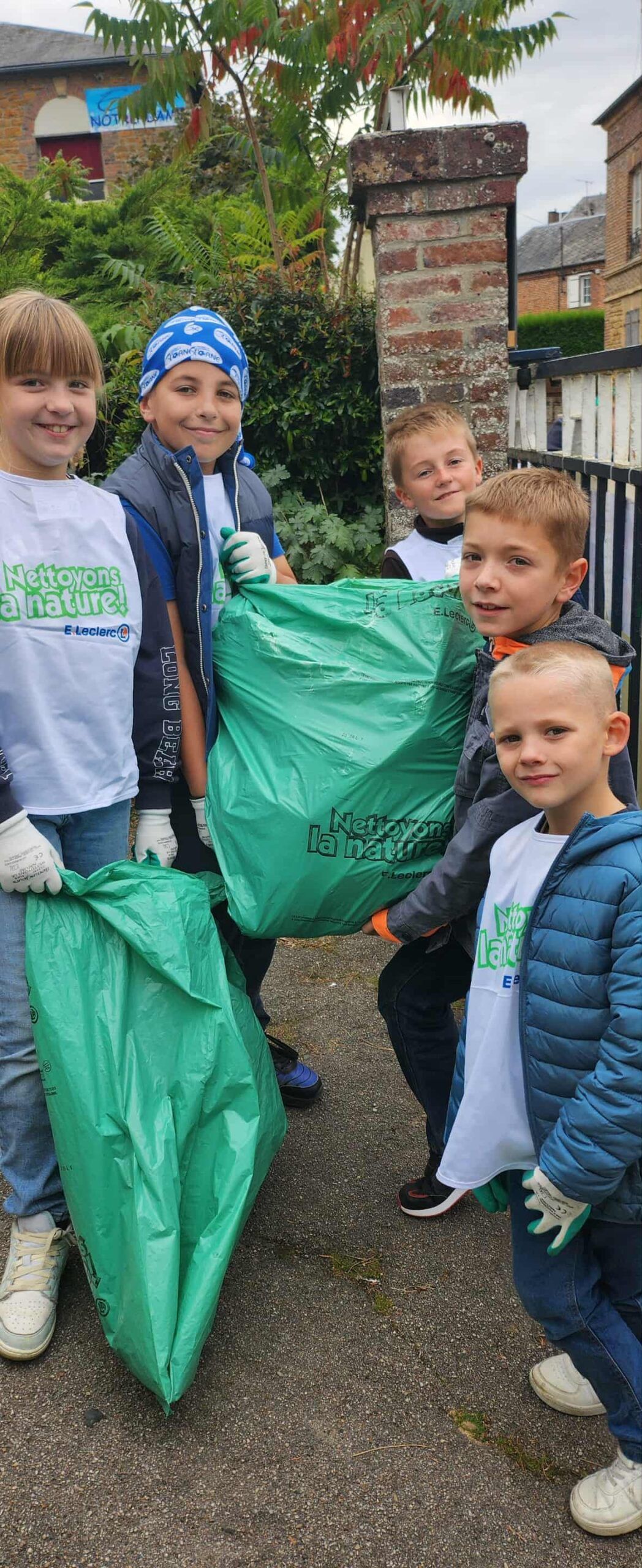 Toute l’école a participé jeudi 25 septembre à l’opération « nettoyons la nature ». Grâce au kit fourni par Leclerc, les enfants de la MS au CM2 ont retroussé leur manche pour sillonner les abords de l’école et la ville de Vimoutiers. Les élèves étaient répartis en plusieurs groupes pour pouvoir quadriller un territoire le plus large possible. Nous avons trouvé des canettes, des emballages plastiques, des bouteilles en verre et beaucoup de mégots. Les élèves trouvent dommage que nous retrouvions déjà des déchets peu de temps après notre passage… Nous espérons que les adultes prennent exemple sur les enfants et fassent plus attention à notre planète.