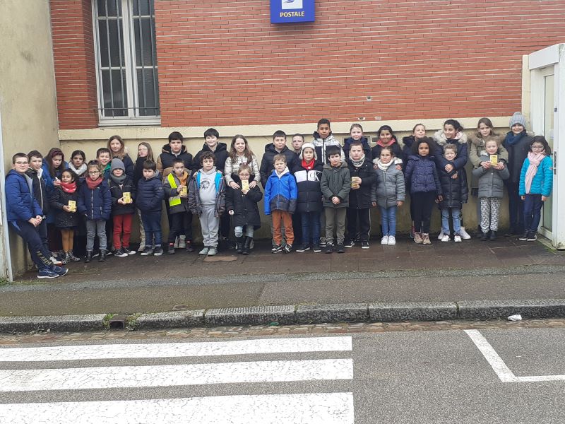 Vendredi 3 février, la classe de Cp est allée à la poste avec la classe de CM1-CM2 de Mme Lecornu, pour rapporter toutes les tirelires de l’école !