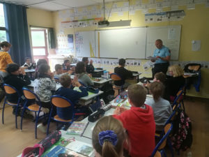 Vendredi après-midi, les élèves de CE2 ont passé le permis piétons et les CM2 le permis internet .C’est Mr Lebouc, un gendarme , qui a présenté les documents et posé les questions .Tous les élèves ont eu le petit diplôme , le 1er d’une longue série à venir !!! Merci à Mr Lebouc et félicitations à tous
