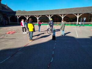 Ce mardi 4 avril, les CM2 de l’école ont passé leur permis vélo. Après un test sur la théorie ils sont tous montés à vélo pour réaliser le parcours soigneusement préparé par les gendarmes.