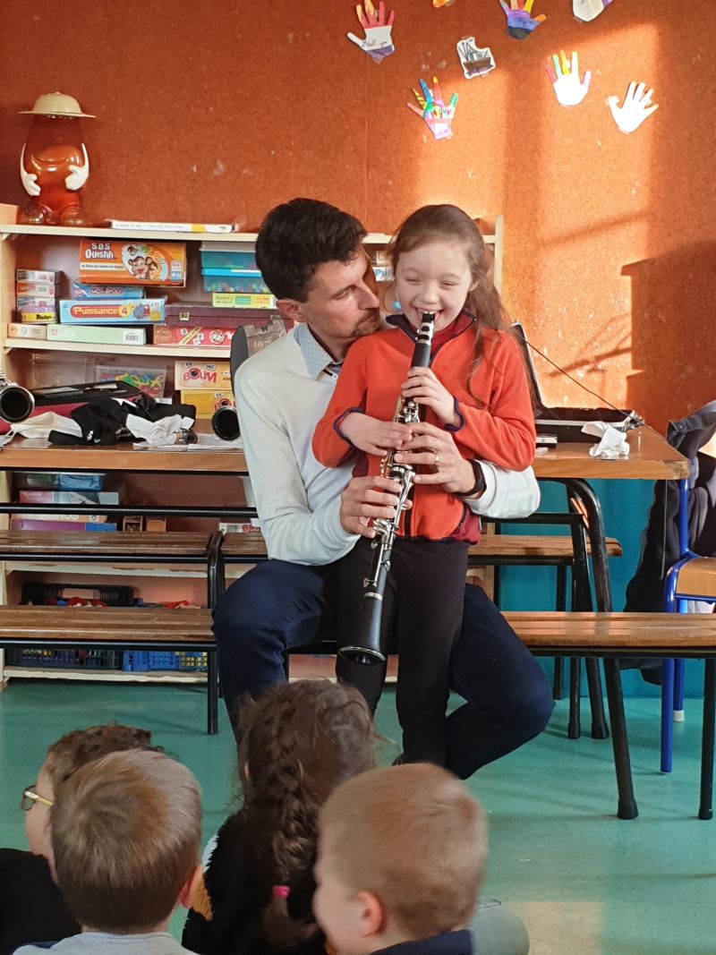 Lundi 8 novembre, une professeur de clarinette est venu présenter cet instrument à l’école. Il nous a décrit et détaillé toutes les parties de l’instrument : le bec, le corps, le pavillon, les clés…