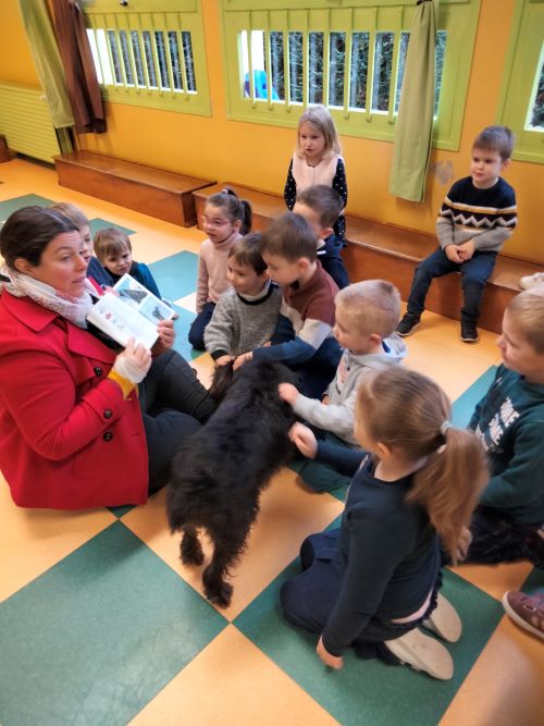 Toujours dans le cadre de ce projet, la maman de Brynn nous a présenté leur chien. Ce fut l’occasion de parler des caractéristiques de cet animal, de ses besoins et de le comparer à d’autres espèces.