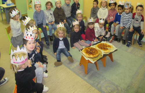 A l’occasion de l’épiphanie, nous avons réalisé 2 galettes que nous avons dégustées au goûter. Pour cet événement, chacun avait confectionné une couronne.