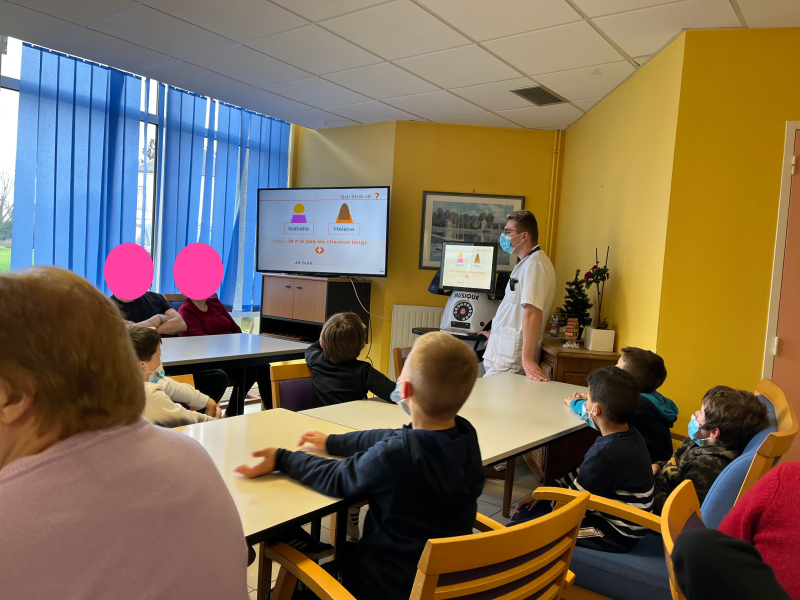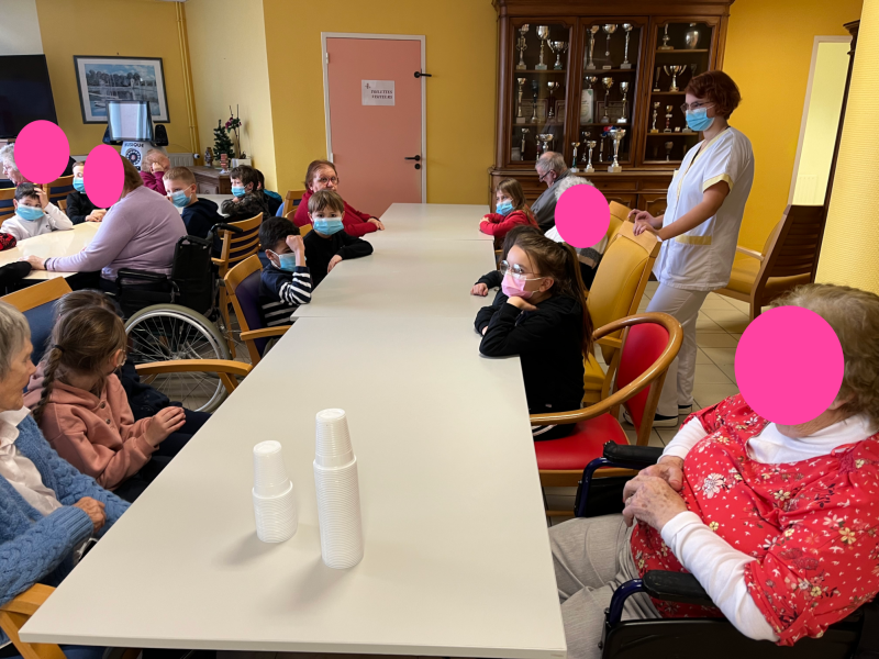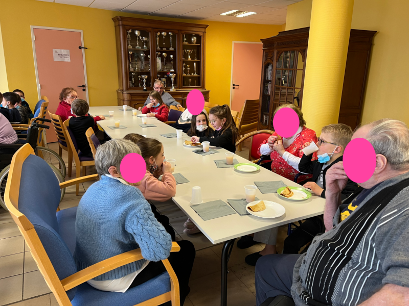 Le 2 février la maison de retraite de l’hôpital Marescot de Vimoutiers, son équipe et les résidents, ont reçu la classe de CE1 pour partager un après-midi convivial. Nous nous sommes réunis autour d’un jeu de loto et plusieurs jeux neuro-cognitifs.
