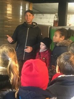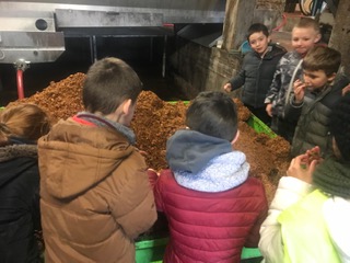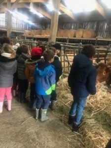 Lundi après-midi , nous sommes partis à pieds visiter la ferme des parents et des grands-parents de Marie, Mr et Mme Merlier et Mr et Mme Gautard. Nous avons découvert des vaches limousines, des veaux et 6 gros taureaux. Mr Merlier nous a ensuite expliqué la fabrication du jus de fruits, du cidre et du poiré. Nous avons pu goûter au jus de pommes et de poires. Délicieux!!