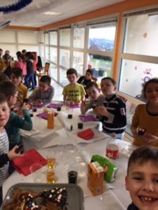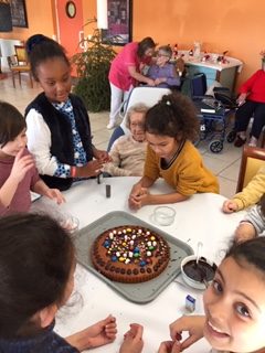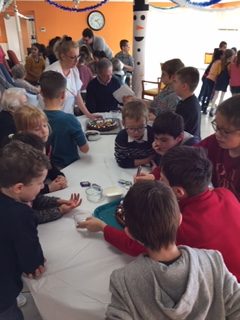 Une visite avait été prévue à Noël mais une épidémie de maladies nous avait empêchés d’y aller. C’est donc ce jeudi 16 janvier que nous nous sommes rendus à la résidence « La Vie » pour décorer des gâteaux, chanter nos chants sur le thème de Noël et du cirque et réciter des poésies. Un goûter partagé nous a ensuite été offert.