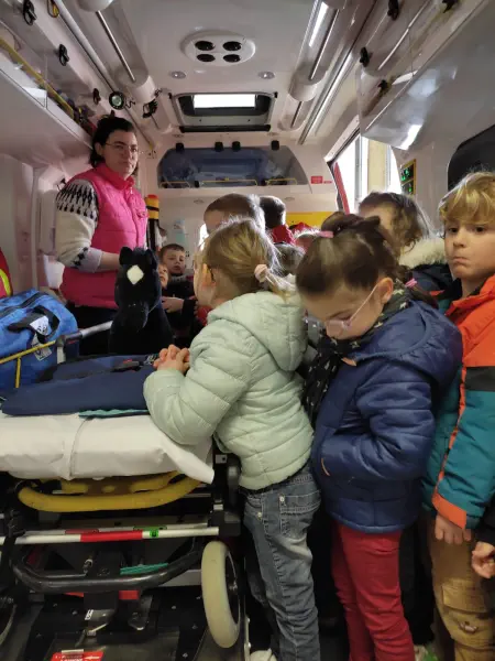 Après un goûter qui a été offert aux enfants, sur le chemin du retour vers l’école, nous avons pu assister en direct à un départ du véhicule de secours.