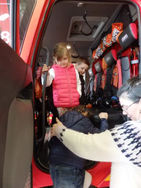 - La visite des locaux (le bureau, les vestiaires, l’équipement du pompier)